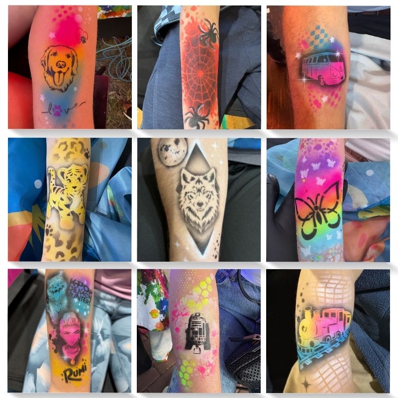 Szukacie efektu wow na imprezę, która porwie Waszych gości w wir kolorowej zabawy? Poznajcie natryskowe tatuaże Airbrush! Bogactwo barw, złoceń, wzorów i szablonów nie ma końca! Zaprojektujemy tatuaż natryskowy o jakim marzysz - tylko zaproś nas na swoja imprezę!